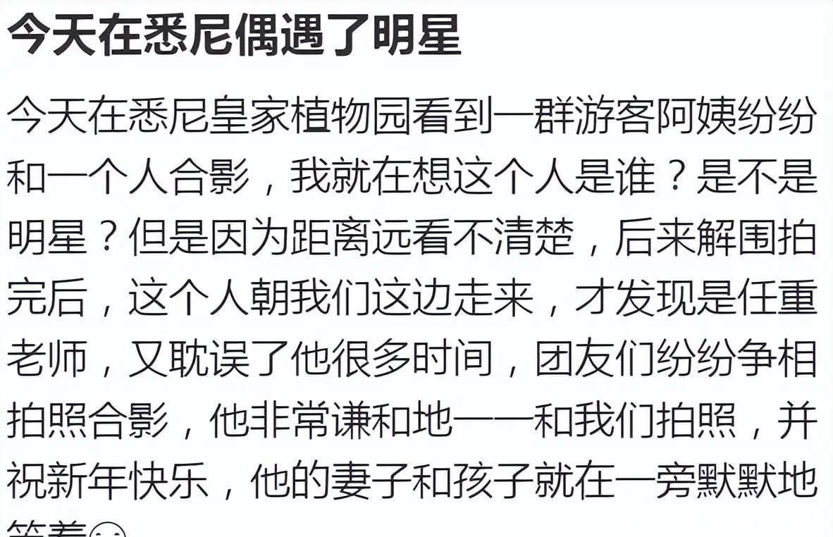 三月的悉尼阳光正好炒股配资官网首页,暖意融融,正是出门撒欢的好时候。就在3月10日这天,好多幸运儿在街头撞见了任重一家子,不仅合了影,还被这哥们的亲和力狠狠圈粉。你说46岁的人了,咋就一点不显油腻呢?瞧他那一身行头,藏蓝T恤配黑短裤,脚踩白球鞋,透着股清爽劲儿,度假这么穿才叫舒服。